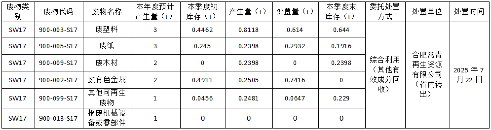 2025年第三季度一般固废产生、贮存和利用处置情况